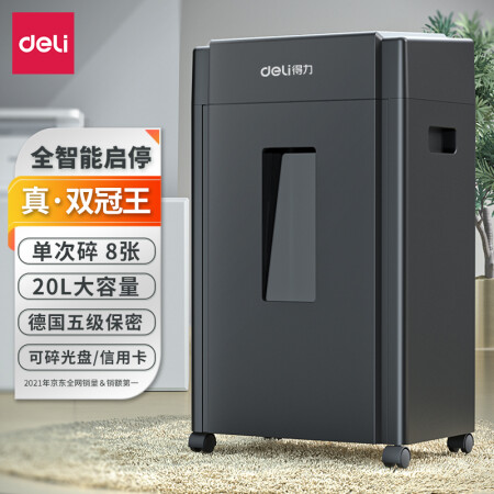得力 deli 5級保密辦公商用碎紙機(單次8張 20L 持續(xù)10分鐘 可碎卡碎光盤)33043
