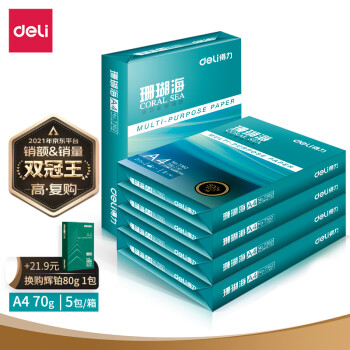 得力(deli)珊瑚海 A4 70g 雙面打印紙 行業(yè)熱銷復印紙 500張/包 5包1箱(整箱2500張)