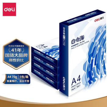 得力(deli)白令海 A4 70g 雙面打印紙 高性價比復印紙 草稿紙 500張/包 5包1箱(整箱2500張)